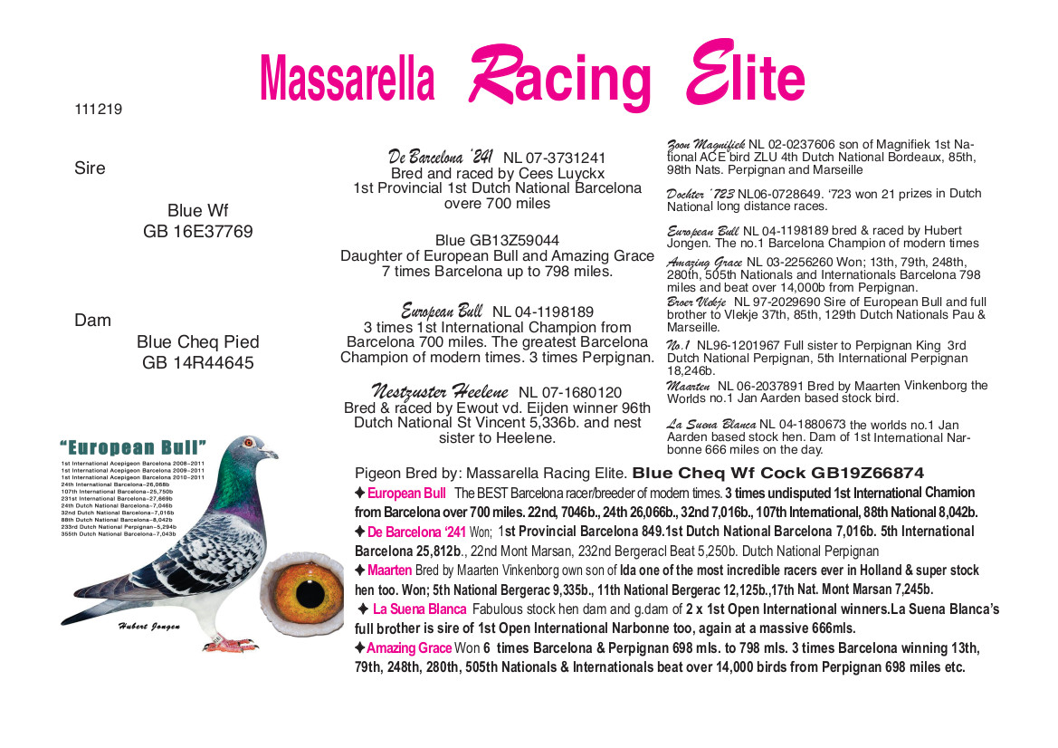 Ref 63 Blue Cheq W/F Cock 19-874 Jan Aarden